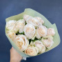 На фото букет из 13 кремовых роз. В составе: роза 13 шт, дизайнерская упаковка 1 шт, атласная лента 1 шт, . Все цветы свежие и ароматные, букет красиво оформлен и отлично подходит для подарка. Доступна доставка цветов или самовывоз.